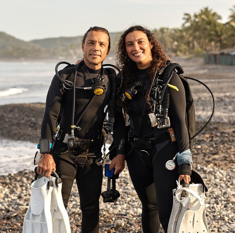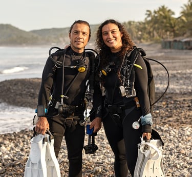 Pirro y Pilar, los fundadores de Taniwha, son el alma de este centro de buceo. Con años de experiencia y una pasión inigualable por el océano, han creado un proyecto integral que va más allá de un simple centro de buceo.